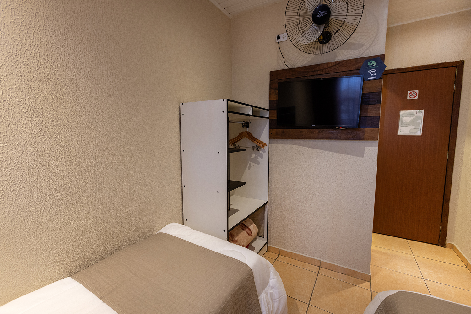 Solução mais acessível para até duas pessoas. Equipado com 2 camas de solteiro, ventilador e TV smart. Esse apartamento tem melhor custo benefício pois não possui frigobar.